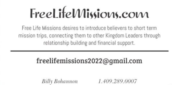 Free Life Missions desires to introduce believers to short term mission trips, connecting them to other Kingdom Leaders through relationship building and financial support.